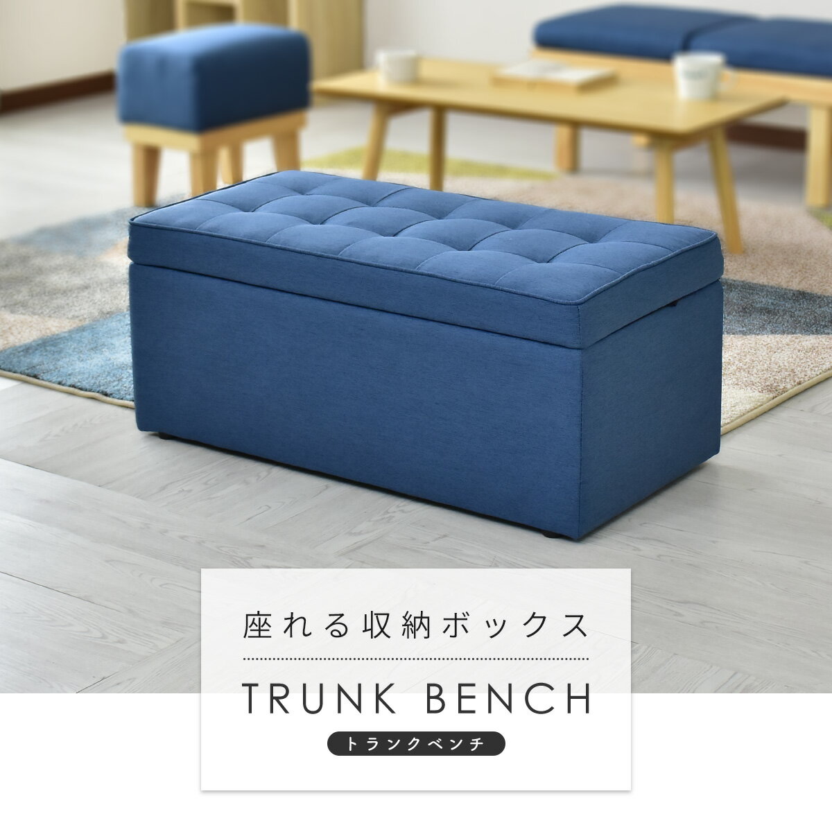 配送について 送料 無料 (北海道+10,000円・沖縄・離島・一部地域見積り) ●商品詳細 -infomation- 商品名 トランク ベンチ【Trunk Bench 2P】 サイズ 外寸 約:幅83cm × 奥行42cm × 高さ36.5cm 内寸 約:幅76cm × 奥行34cm × 高さ27.5cm 材 質 張り材:【レザー調】PVC/【ファブリック】ポリエステル 耐荷重 座面:80kg/収納内部:15kg 重 量 本体:約11kg 梱包重量 梱包材等含め約12kg 備 考 ※その他、記載事項ご確認の上ご注文ください。